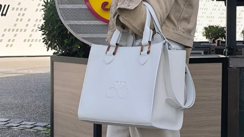 Ideal for carrying your essentials throughout the day. You can adapt it to your look by changing its handles in different colours and materials and carry it on your shoulder with long handles or as a crossbody bag in various materials and colours.